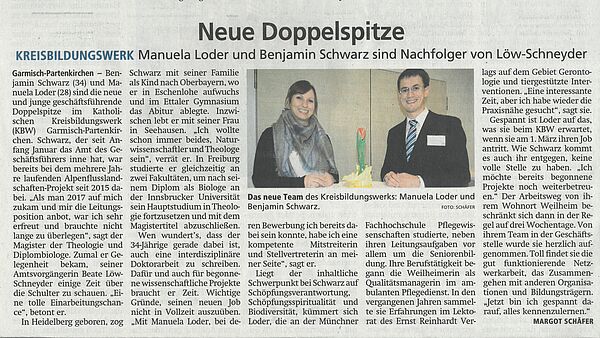 Im März 2019 beginnt Manuela Loder als Stellvertretende Geschäftsführerin und Pädagogische Mitarbeiterin bei uns. Frau Loder wird als studierte Pflegewissenschaftlerin als einen inhaltlichen Schwerpunkt die Seniorenbildung und das Programm „echtes Bayern“ weiterentwickeln.